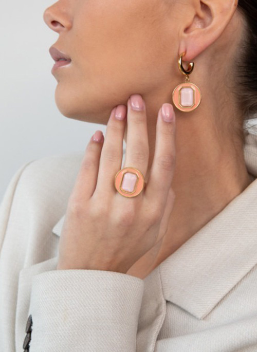 With the circle of love enamel ring, even the coldest of days will feel a tad bit warmer. Its 24k gold plated circular frame, enriched with vibrant color contrasts and geometry play, radiates both luxury and playfulness. In lilac, intense rose or ecru – the circle of love ring is an eccentric showstopper.