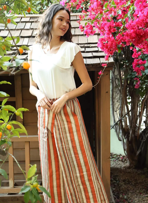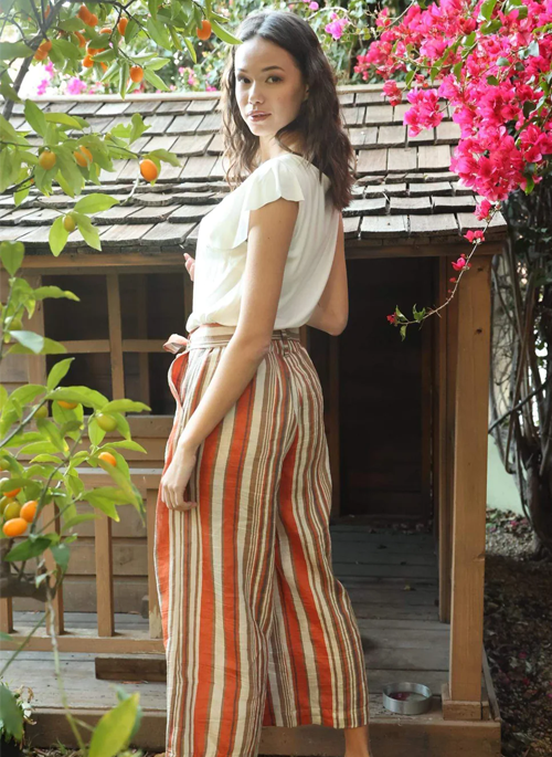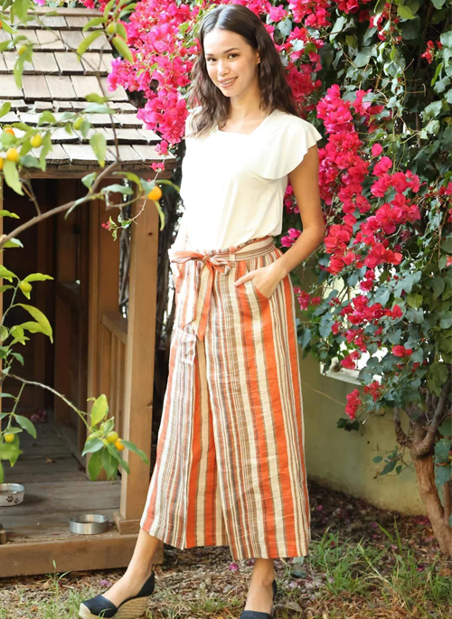 Easy dressing in a Creamsicle Stripe Orange, these pants are perfect for everyday wear. Featuring cropped, wide-leg and a paperbag waistband, the Lucas Pant is made of our crisp linen and is perfect for the warmer weather.