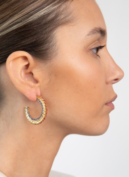 The lucky hoops are a perfect essential for your collection. Its delicately designed colored crystals are placed both at the front and the side, so that you can shine bright from all angles. Resting in a 24k golden setting, these hoops are no less than everyday luxury. In green, neutral or coral, with the lucky hoops you’ll radiate the authentic you.