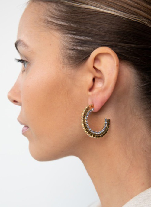 The lucky hoops are a perfect essential for your collection. Its delicately designed colored crystals are placed both at the front and the side, so that you can shine bright from all angles. Resting in a 24k golden setting, these hoops are no less than everyday luxury. In green, neutral or coral, with the lucky hoops you’ll radiate the authentic you.