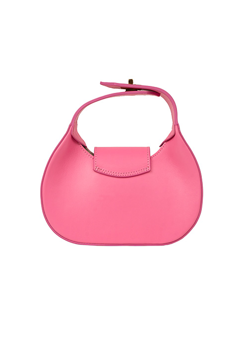 The Luna bag, moon shaped is not just a regular bag it is a little statement piece. The bag comes with a detachable shoulder strap, or you can simply hold it in your hand. The inside has a small open pocket and the bag closes with a flap.