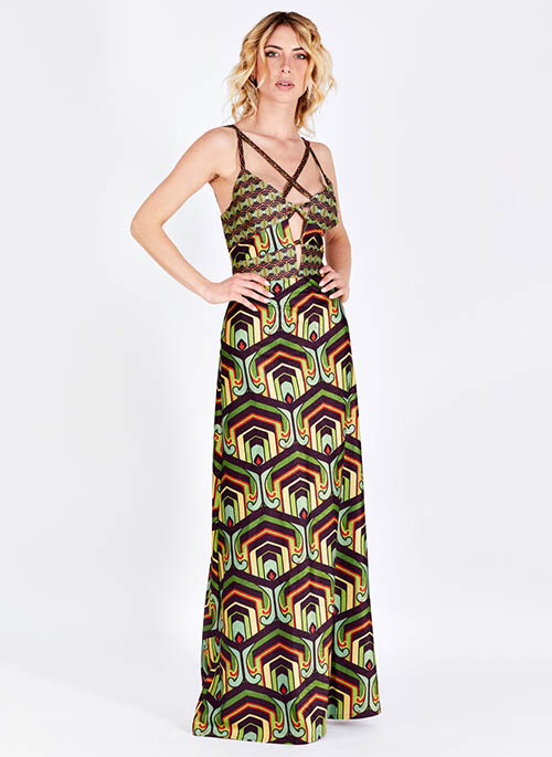 Sensual weaves and seductive cut-out details embellish this elegant lurex dress. Illuminate your summer evenings with sensuality and elegance with this long, low-cut, enveloping dress. Its refined charm makes it perfect for glamorous parties, exclusive events and classy dinners.