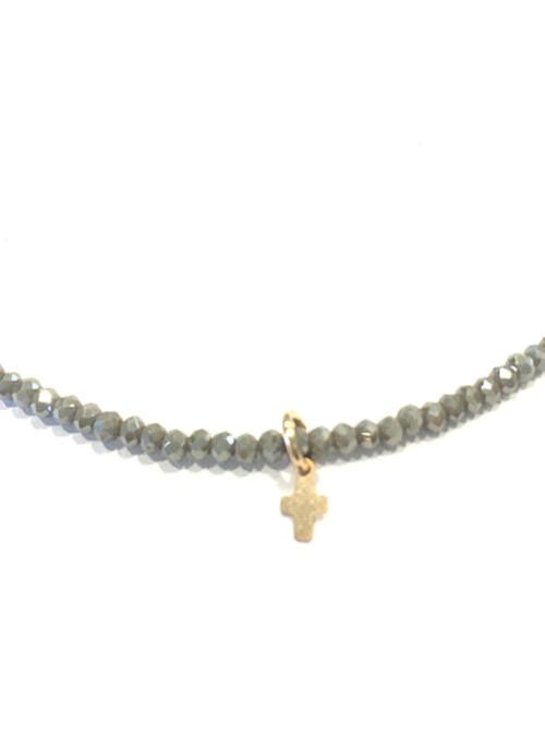 14k gold-filled luxe cross on our gray crystal beaded necklace.