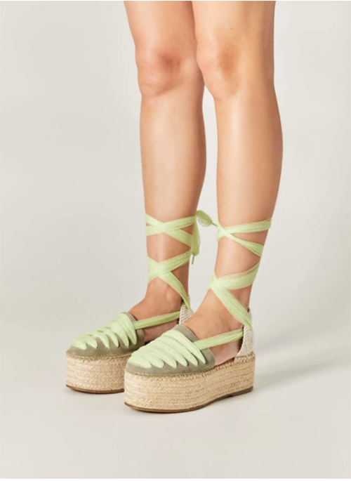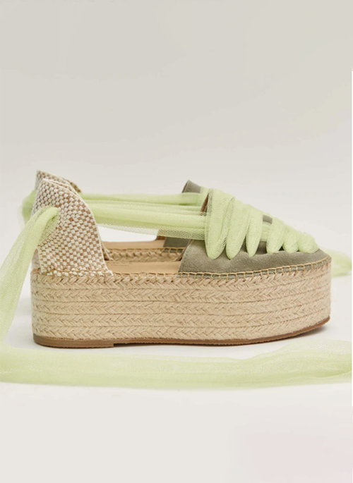 Khaki espadrille with a 5.5 cm high platform. As a novelty, we have introduced tulle to tie the espadrille to the leg, in this way we combine comfort and design.