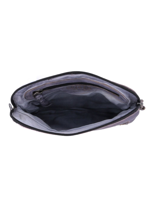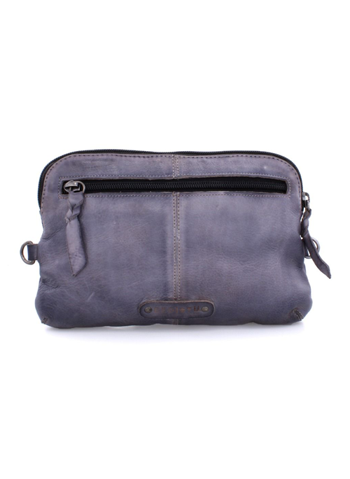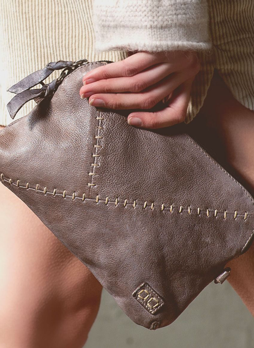 - Compact clutch bag with exaggerated stitching on front panel, removable and adjustable cross body strap