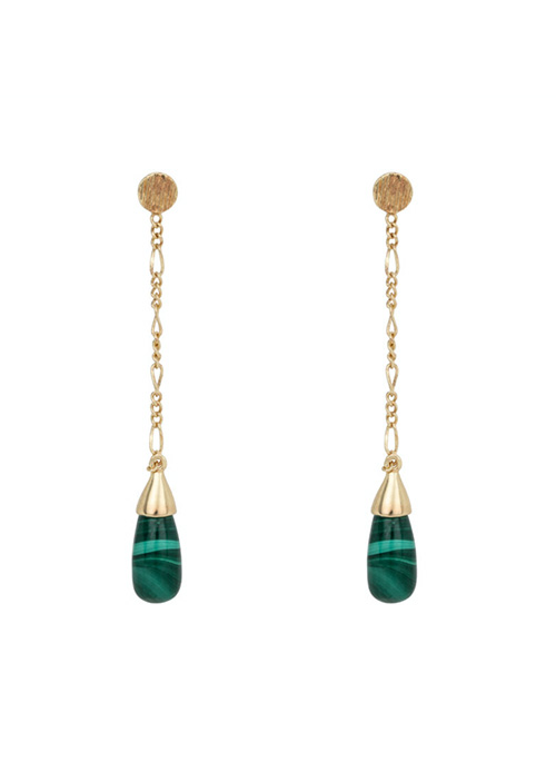 - Materials: Malachite, Sterling silver post, brass body and 0.5 micron of gold and gold e-coat