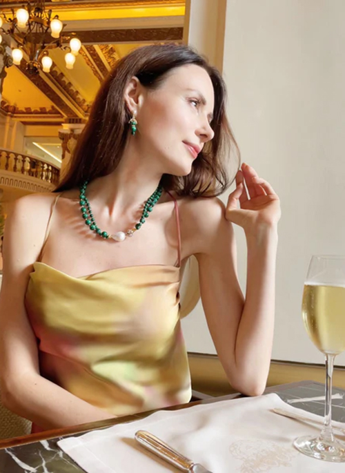 This handmade earrings is made of malachite with Japan golden plater brass findings. This asymmetric earrings looks pretty and special which can be matching with dress, blouse or knitwear. Pair with Farra necklace and bracelet to complete your look. Also, this is a very nice gift for birthday, anniversaries or festivals. It will be contained in a nice jewelry box with well packed.