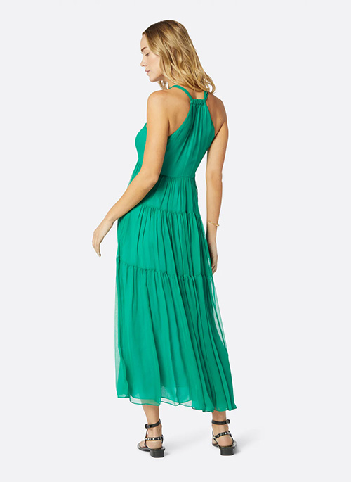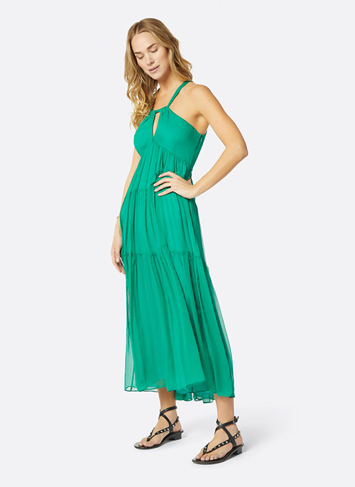 The Marcy cascades on the body with elegant ease while evoking strong vacation vibes. This silk dress grabs attention thanks to its neckline and tiered silhouette that is relaxed, yet flattering.