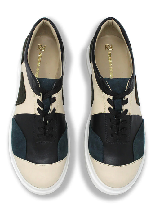 Discover the versatility of our Maria urban tennis. With a careful selection of colors and textures made by hand with 100% leather materials. This tennis shoe becomes an essential basic in your closet, perfectly complementing all your daily looks. The pieces in organic and modern shapes add a touch of sophistication to this sneaker, making it a perfect option for those looking for a combination of fashion and functionality. Dare to wear the vanguard on your feet with Regina Romero and make this urban shoe your faithful companion in your day to day.Details: