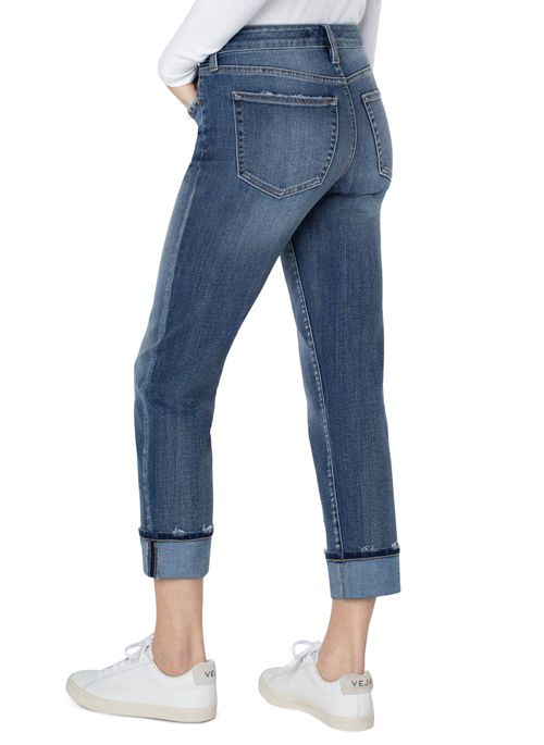 Our Marley Girlfriend is the perfect silhouette, offering the perfect amount of room from mid-thigh to the cuffed hem. Super comfortable with amazing stretch. This modern eco jean was designed using new laser techniques and processes that give the "Liverpool Look" and uses a fraction of our natural resources.