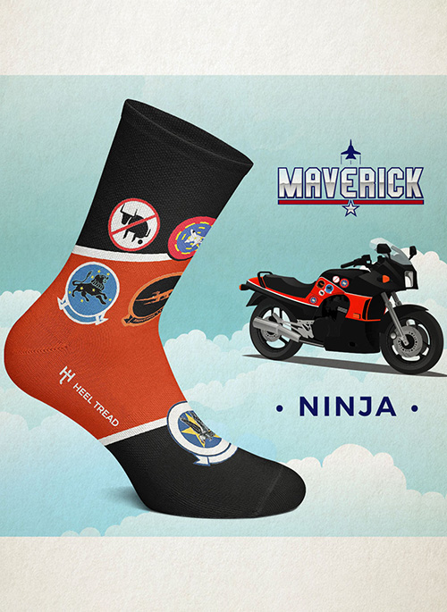 Who doesn’t want a friend & wingman like Goose? Supersonic dogfights? Vertical afterburner-powered climbs? Top Gun raised us to be brave and bold and badass and that even when our egos are writing checks our bodies can't cash, we can still fly into... the Danger Zone 🎵 In a beautiful bespoke pack with socks inspired on the F-14 Tomcat, Maverick's Kawasaki GPZ, and the helmet designs of Maverick and Iceman.