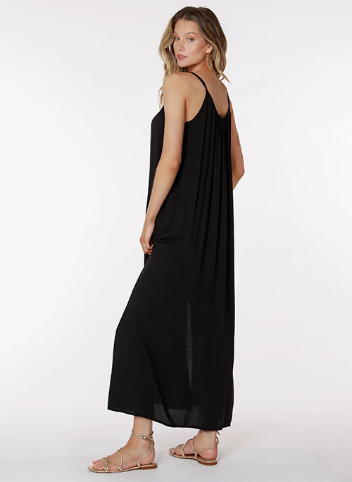 Be effortlessly stylish in this breezy maxi dress! Made with a flattering low scoop neckline with shirring and a high slit. Dress it up with some cute accessories and sandals.