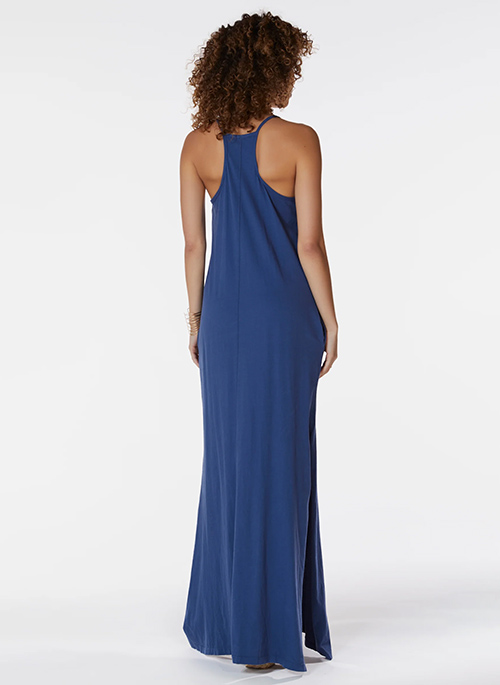 Be effortlessly stylish in this breezy maxi dress! Made with a flattering low V-neckline with center front and back seaming. High side slit and side seam pockets. Dress it up with some cute accessories and sandals.