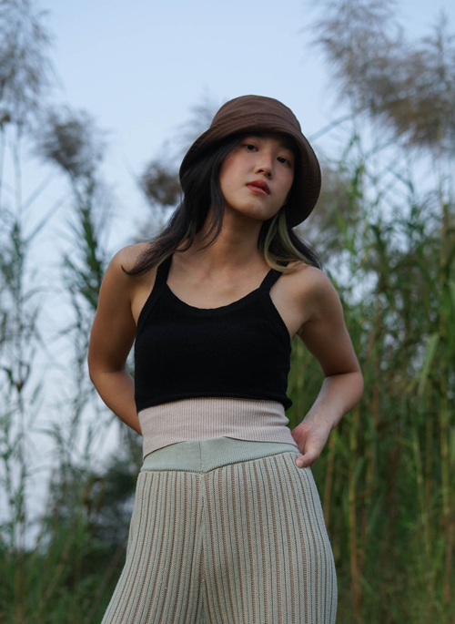 - Double coloured knit tank top