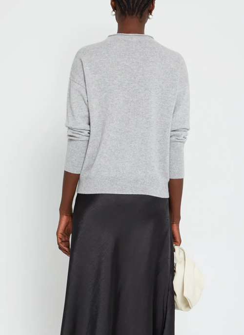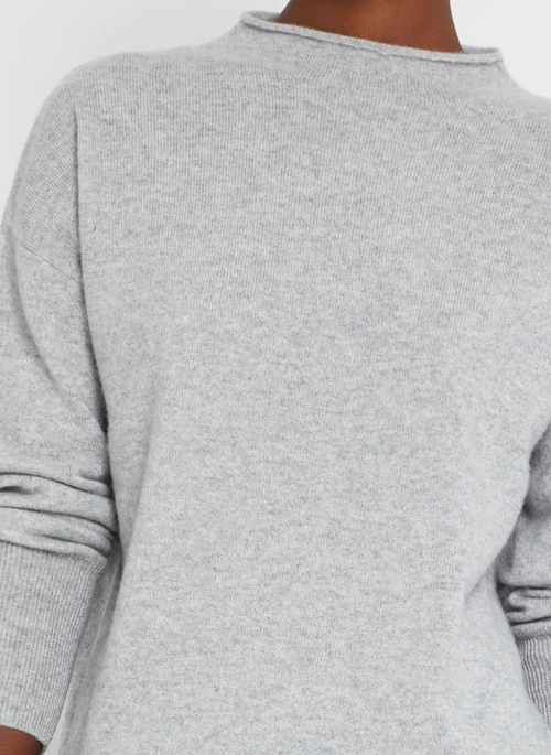 We love how effortless the unfinished mock neck looks on this 100% A-Grade cashmere sweater. Done with a relaxed fit.