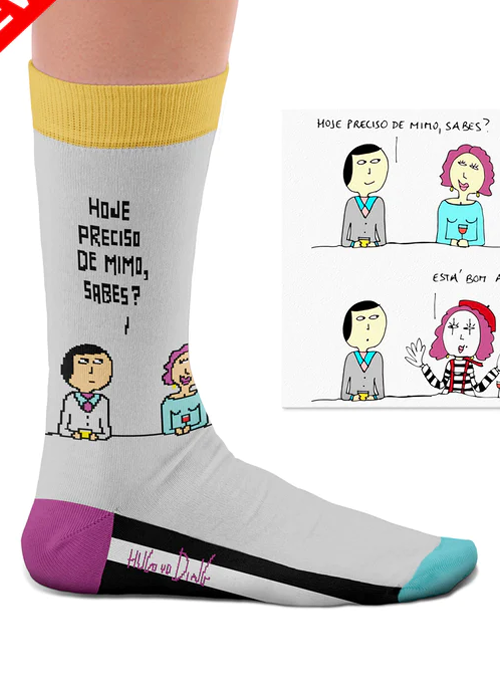 Meias Mimo das tiras "Dates from Hell" por Hugo Van Der Ding em colaboração com a Sock Affairs.