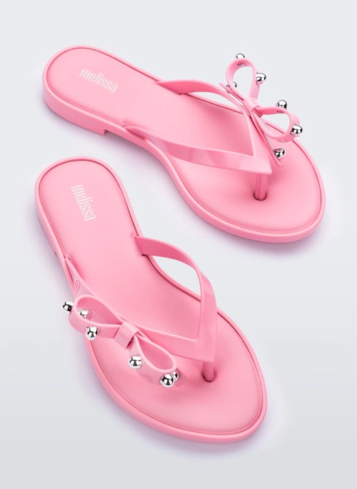 The new Melissa Flip Flop Slim is packed full of details that make it very special. It has a comfortable Grenflex insole and a super trendy almond toe. A truly special highlight is the maxi bow with chrome details on its strap. The color palette has fashionable tones that compliment any outfit.