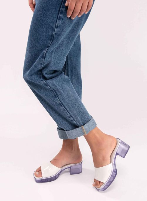 Modelled on the sandals that defined the 90’s and early 00’s, the Melissa Shape is the new must-have for anyone looking to impress with a girly, yet cool look. The new Melissa Shape is comfortable and has the popular square toe with a low block heel. A main feature is the transparent sole which is a tribute to Melissa s pure DNA where structure, lightness and technology become a hype feature of style.