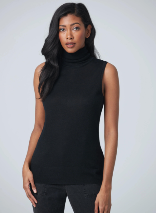 Light and cozy turtle knit top from our new collection. A must during winter to wear with pants or under a blazer. Very feminine sleeveless turtleneck with a nice finish at the waist. A timeless piece that every woman needs in their wardrobe.