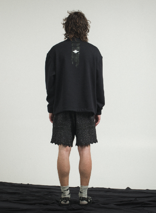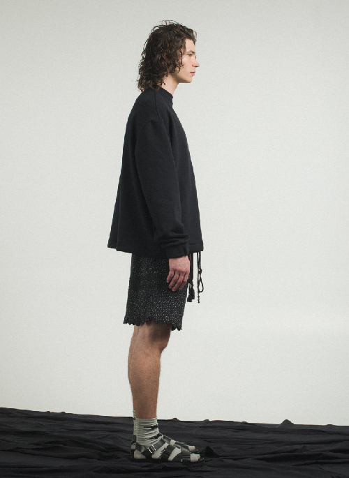 100% organic cotton jumper with pockets and adjustable cords. The piece is finished with a hand-painted brush stroke on the back.