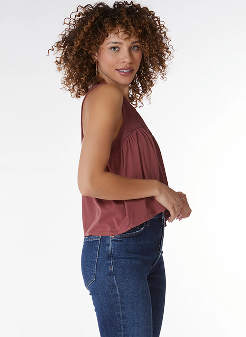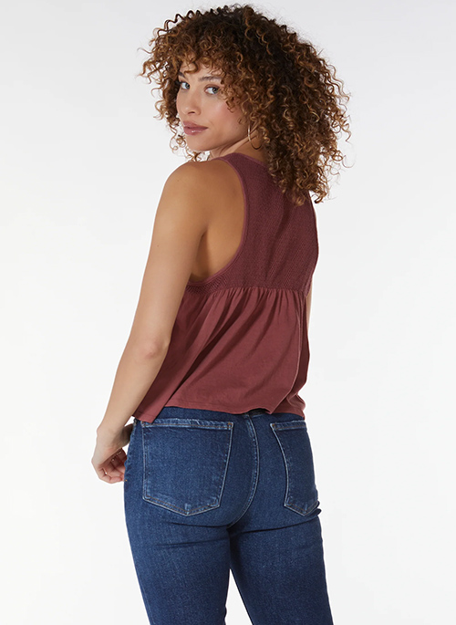 The perfect spring statement tank is here! Designed with a scoop neckline, mesh inset sweetheart yoke, and flowy draped body. Perfectly sweet, perfectly bobi!