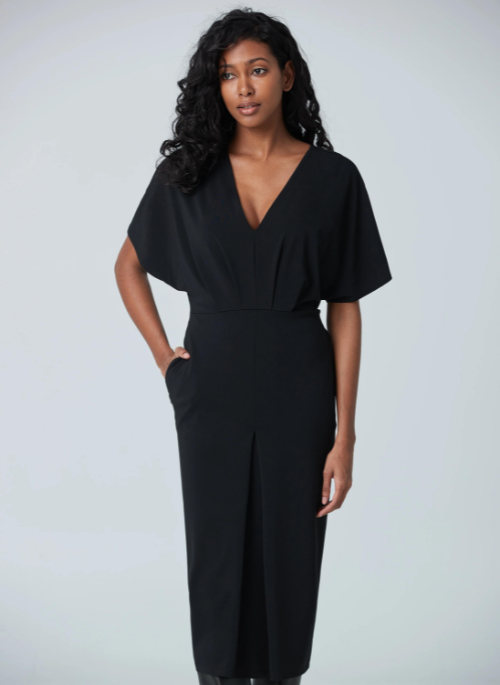 V neck batwing midi dress. A simple yet sophisticated dress made of machine washable Italian matte jersey fabric.