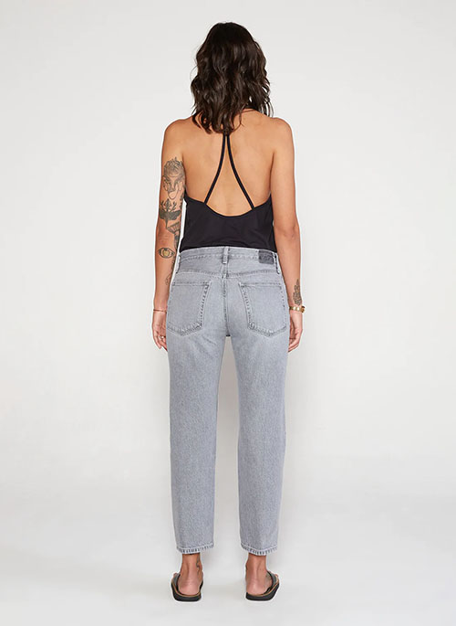 A clean straight fit with an easy rise and vintage construction. Rhea is fitted through the hip, then easy through the leg. A cool grey wash lightens the mood.