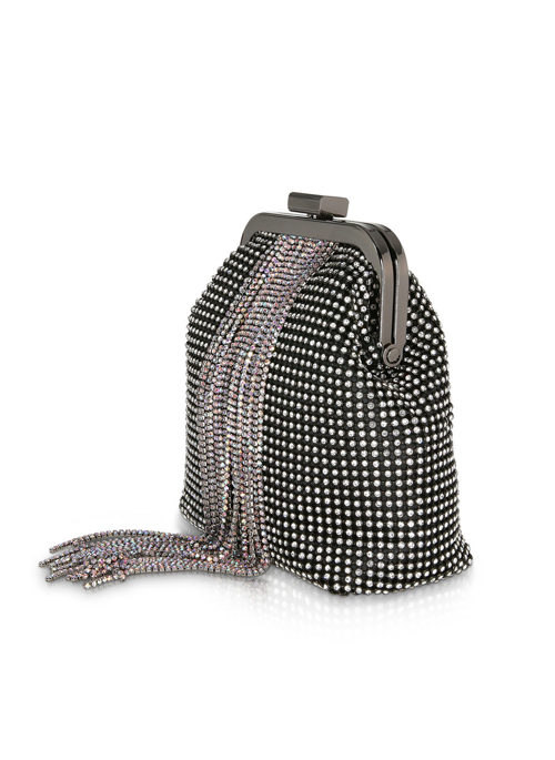 Behold the Mila Crystal Pouch—an exquisite accessory that exudes opulence and grandeur. Embellished with a plethora of glistening crystals, this pouch is a sight to behold as it shimmers and sparkles with every movement. Adding to its allure, the intricate crystal fringe adds a playful and charming touch, creating a dazzling visual display that is sure to captivate the senses.