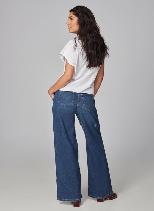 Inspired by 70s silhouettes, the Milan is a high-rise wide-leg pair of jeans that are on trend and ultra-flattering. Featured in Nigh Sky.Details: