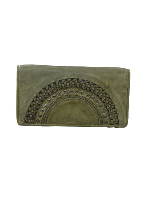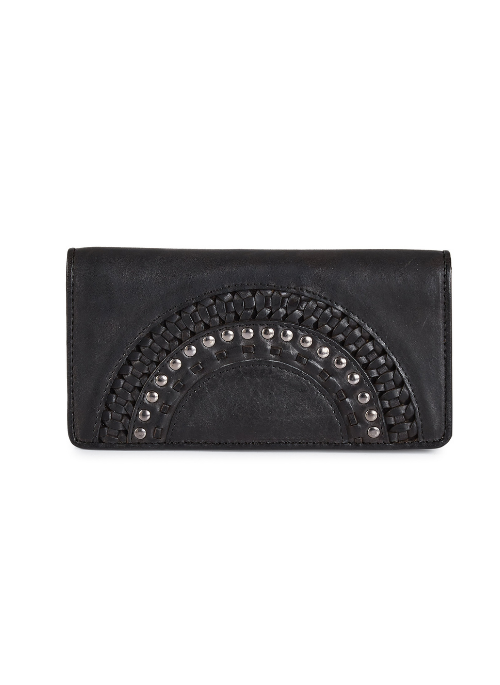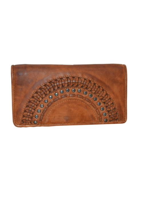 This wallet will fit your cell phone. A sturdy and robust wallet that has an edgy style that immediately draws attention. Handmade in washed cowhide, which has been stamped with an amazing patterned theme, this wallet oozes charm and vitality.