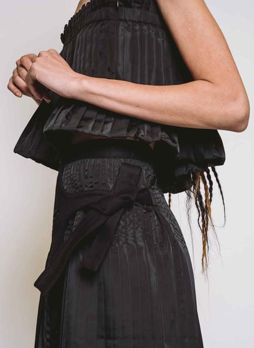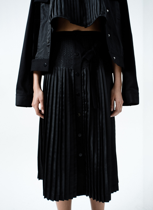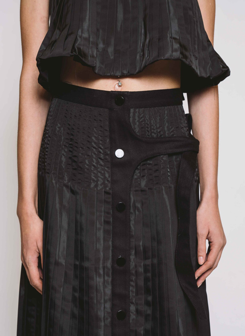 The Mimi Skirt features stitched down pleats, contrast waistband and closure front button placket for a bold yet feminine look.