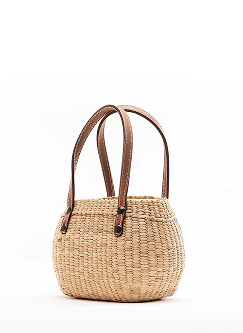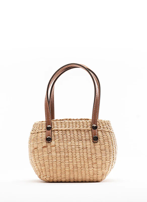 Mini Tote-Tan Is By Far Our Smaller And Cutest Tote. It's An Ethically Made Handbag Tote With Tan Faux Leather Handles And Drawstring Closure.