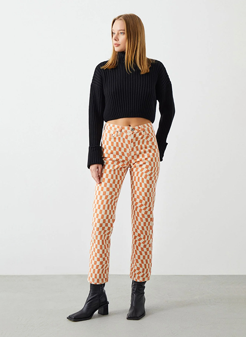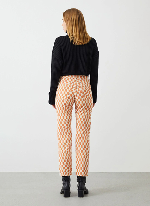 From Ra Denim A/W 22-23 Women's Collection MIRA Orange Ecru Checkered Jeans.