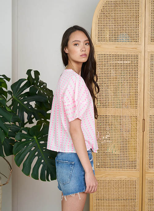 With its puff sleeve and relaxed fit, the Mojito Top is easy and versatile in equal measure. Cut in a Neon Pink dobby fabrication, this shirt is finished with abbreviated sleeves for a stylish, youthful look.