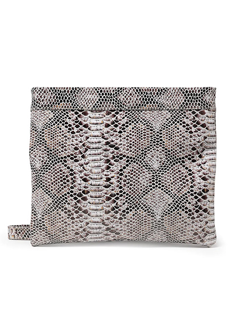 Jump on the animal print trend with this chocolate snake printed leather cross-body convertible clutch and transition from day to night with ease.