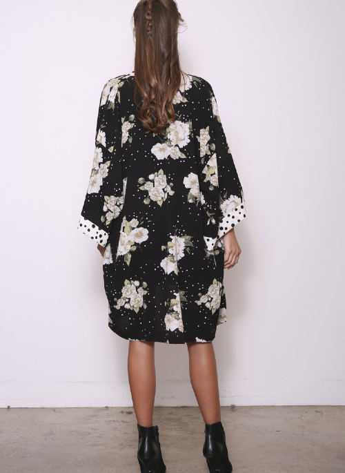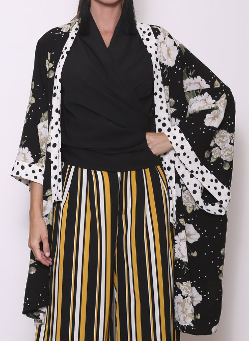Made from reclaimed fabrics, our Mollie mixed media duster wrap was created from deadstock fabrics of the deadstock fabrics! (Take a minute to grasp that). Based on how much we had left as we don’t cut an exorbitant quantity per style (we are slow fashion, after all), the print combos were created accordingly.