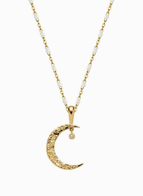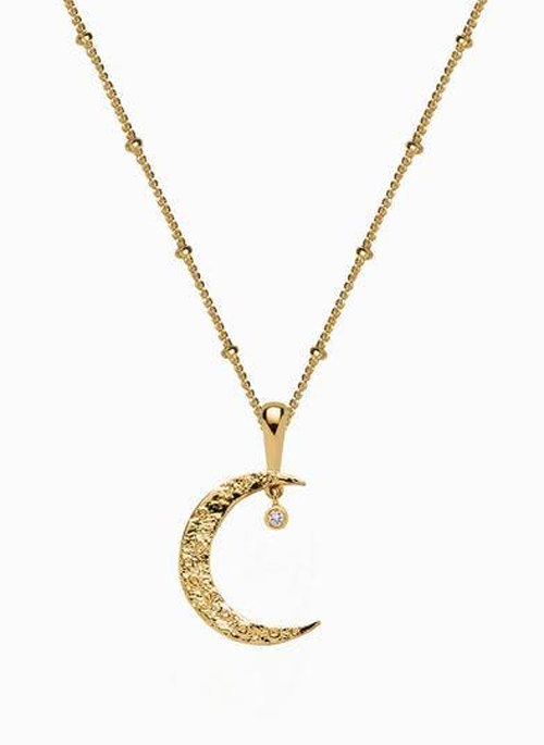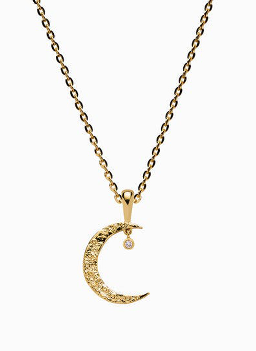 This gold vermeil genuine Diamond Moon Necklace immortalizes the timeless image of a crescent moon and its star.