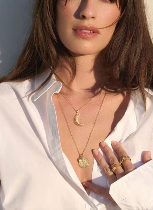 This gold vermeil genuine Moonstone Crescent Necklace features moonstone cabochons throughout to invoke lunar energy and bring about inner clarity.