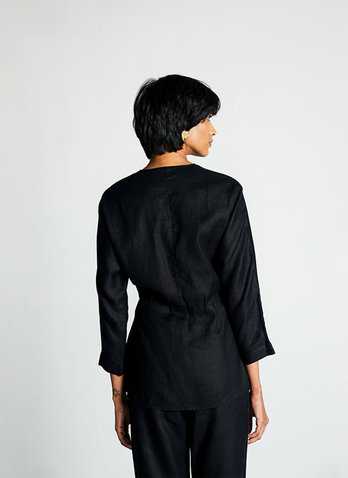 Double this 100% hemp shirt as a jacket or layer it on depending on how you feel. The tie up at the waist cinches to give your look shape and style.