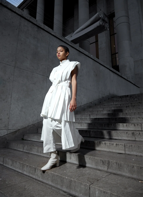 - The clean lines drawn by the folds of the NABOO shirt structure the shirt and recall the retro-futuristic style , recurring in the inspirations of the Louise Marcaud brand. Made in cotton twill from the ends of the rolls of a large luxury house , the NABOO shirt will set the tone for your outfits with delicacy and precision. The NABOO shirt can be worn as a total look with the PLISSÉ trousers or more soberly with more classic trousers. 3 in 1 NABOO can be worn as a shirt , jacket and dress . This piece will give your looks originality with a casual aspect while remaining distinguished .