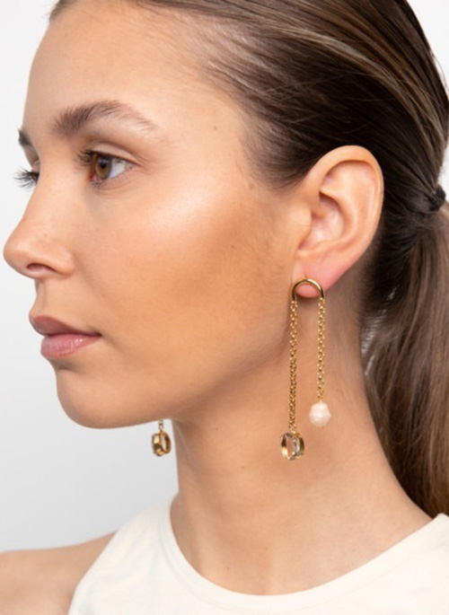 Showcasing true personality, the Nadine earrings are the ideal casual chic stunners for your daily ventures! With its carefully handcrafted and 24k gold plated dangling chains, finished with a mesmerizing colored gemstone on either side, the Nadine will make you feel just as special as it looks!