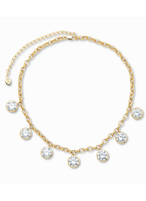 Our Natalie Necklace in cubic zirconia adds all the subtle sparkle to dress up any look. Wear this on its own, or add the Moira Necklace in cubic zirconia to give your outfit extra sparkle.