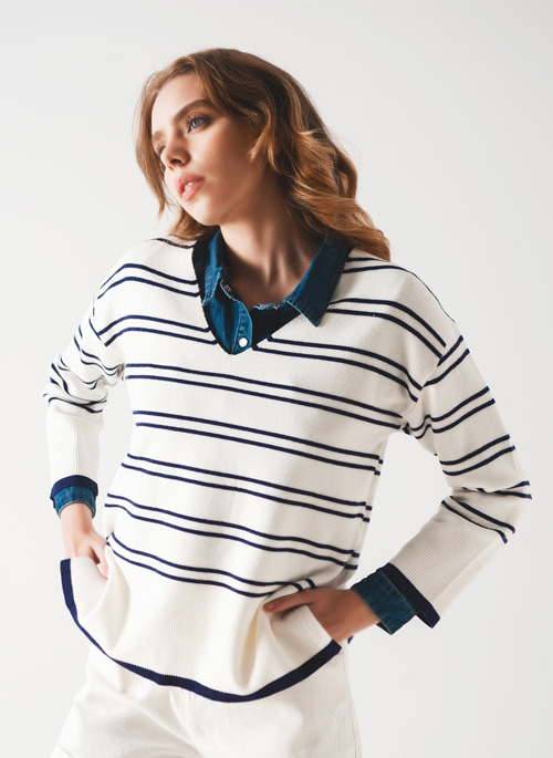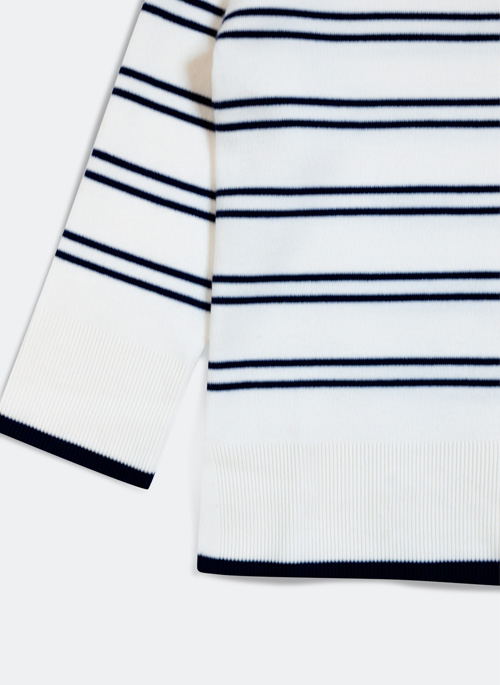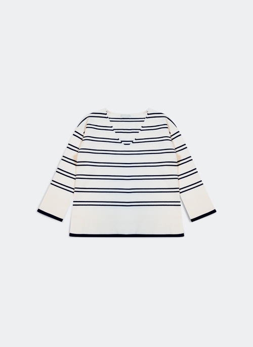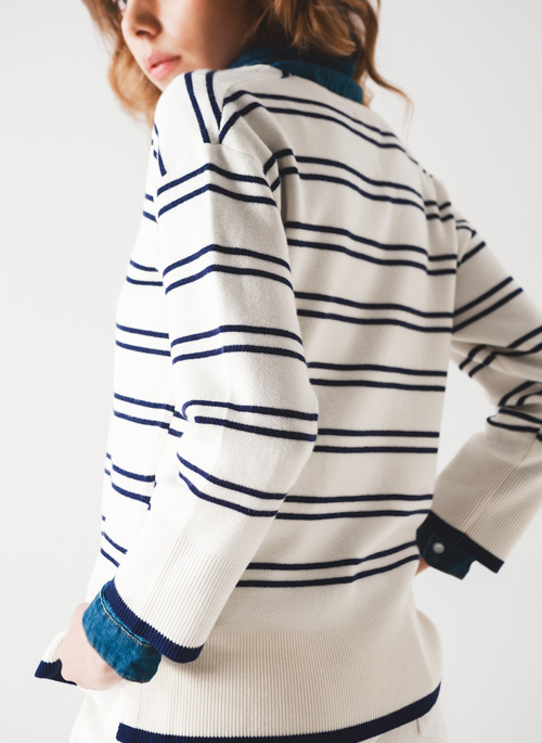 NEW SWEATER IN WHITE WITH NAVY STRIPE Description: 50% Viscose 28% Polyester 22% Polyamide. Model is wearing size S. Model is: 33-23-35 Height: 5'10''. Runs true to size. Regular Fit. Style Nº: 5281317.
