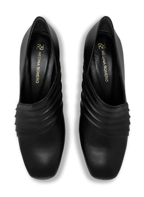We introduce you to Nicole. This Regina Romero shoe stands out for its elegance, thanks to its delicate 100% leather draping, adding a touch of class and glamour. Whether it's for a special occasion or to complement your daily style, Nicole will be the center of attention and she will make you feel confident with every step you take.