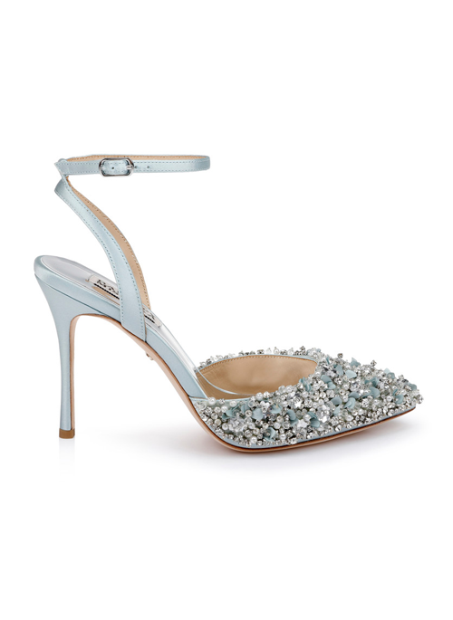 - Slip into this shoe and get a taste of pure bliss. Dainty yet secure straps gently wrap around your ankles, while sparkling crystals envelop your feet. These 3 ¾-inch stiletto heels don’t just look fabulous; they’re also comfortable enough to dance until sunrise.