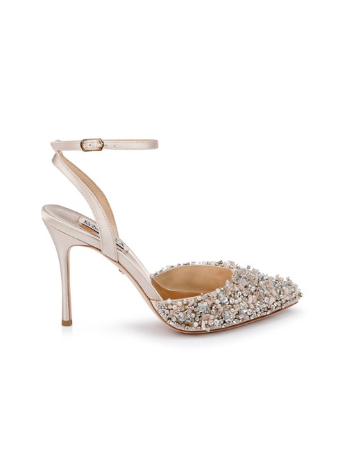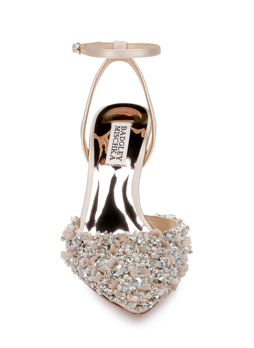 - Slip into this shoe and get a taste of pure bliss. Dainty yet secure straps gently wrap around your ankles, while sparkling crystals envelop your feet. These 3 ¾-inch stiletto heels don’t just look fabulous; they’re also comfortable enough to dance until sunrise.
