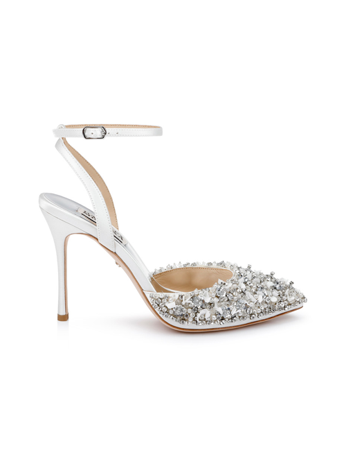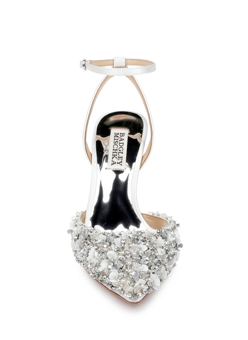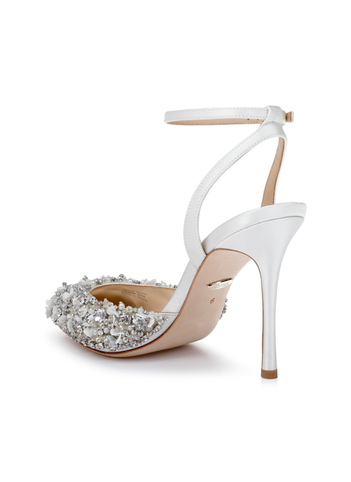 - Slip into this shoe and get a taste of pure bliss. Dainty yet secure straps gently wrap around your ankles, while sparkling crystals envelop your feet. These 3 ¾-inch stiletto heels don’t just look fabulous; they’re also comfortable enough to dance until sunrise.