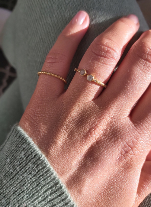 Our Norah Gold Beaded ring is the perfect, delicate piece to wear alone or stack with other pieces.
