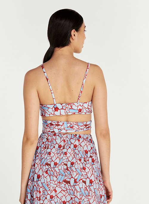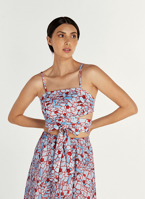 - The Now Top is a cute neoprene crop top with a straight neckline and thin straps over the shoulders. It is super unique with longer straps that you can wrap around your waist and tie either in the front or at the back, however you prefer.