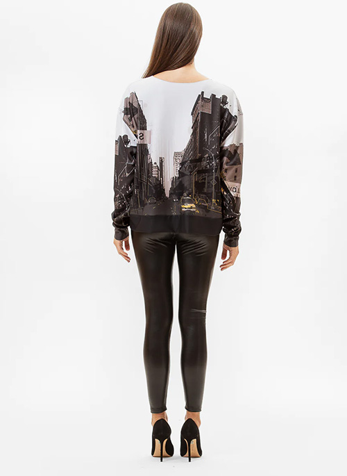 For the love of NYC and it's city artistry. The reversible NYC hi-lo sweatshirt is the perfect combination of living big style NYC life and on-the-go lifestyle. Each detail of the illustration creates a level of cool in your every day style.